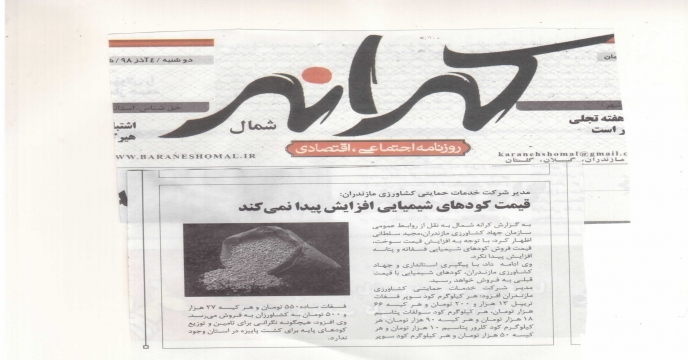 مدیر شرکت خدمات حمایتی کشاورزی مازندران از اطلاع رسانی با موضوع عدم افزایش قیمت کود در رسانه های گروهی و مطبوعات استان مازندران خبرداد.