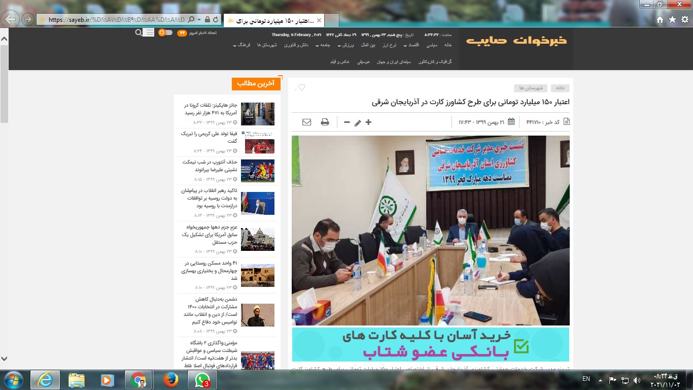 مهندس جمشید باقریان مدیر شرکت خدمات حمایتی کشاورزی استان روز سه شنبه مورخ 99/11/21 در نشست مطبوعاتی خود با خبرنگاران، عملکرد استان و اهداف شرکت را تشریح نمود که خلاصه این نشست در روزنامه های استانی درج و مصاحبه ایشان در شبکه استانی صدا و سیما پخش شد.