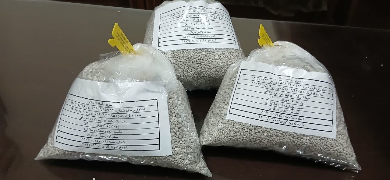 مدیر شرکت خدمات حمایتی کشاورزی استان چهار محال و بختیاری از انجام عملیات نمونه گیري از محموله کودي سوپر فسـفات ساده، تولیدي شرکت فرآیند کود و سم بافق با حضور نماینده شرکت مذکور در محل انبار های سازمانی شرکت خدمات حمایتی کشاورزی استان چهار محال و بختیاری خبر داد.