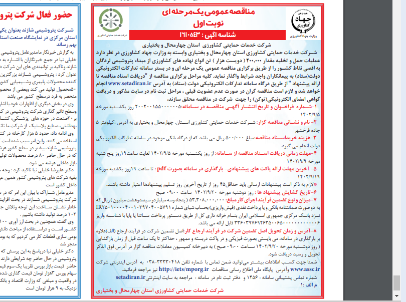 - تهیه و تامین کود کشاورزی سوپر فسفات تریپل توسط شرکت خدمات حمایتی کشاورزی مجتمع شیمیایی آبیک به استان خوزستان شهرستان شوش